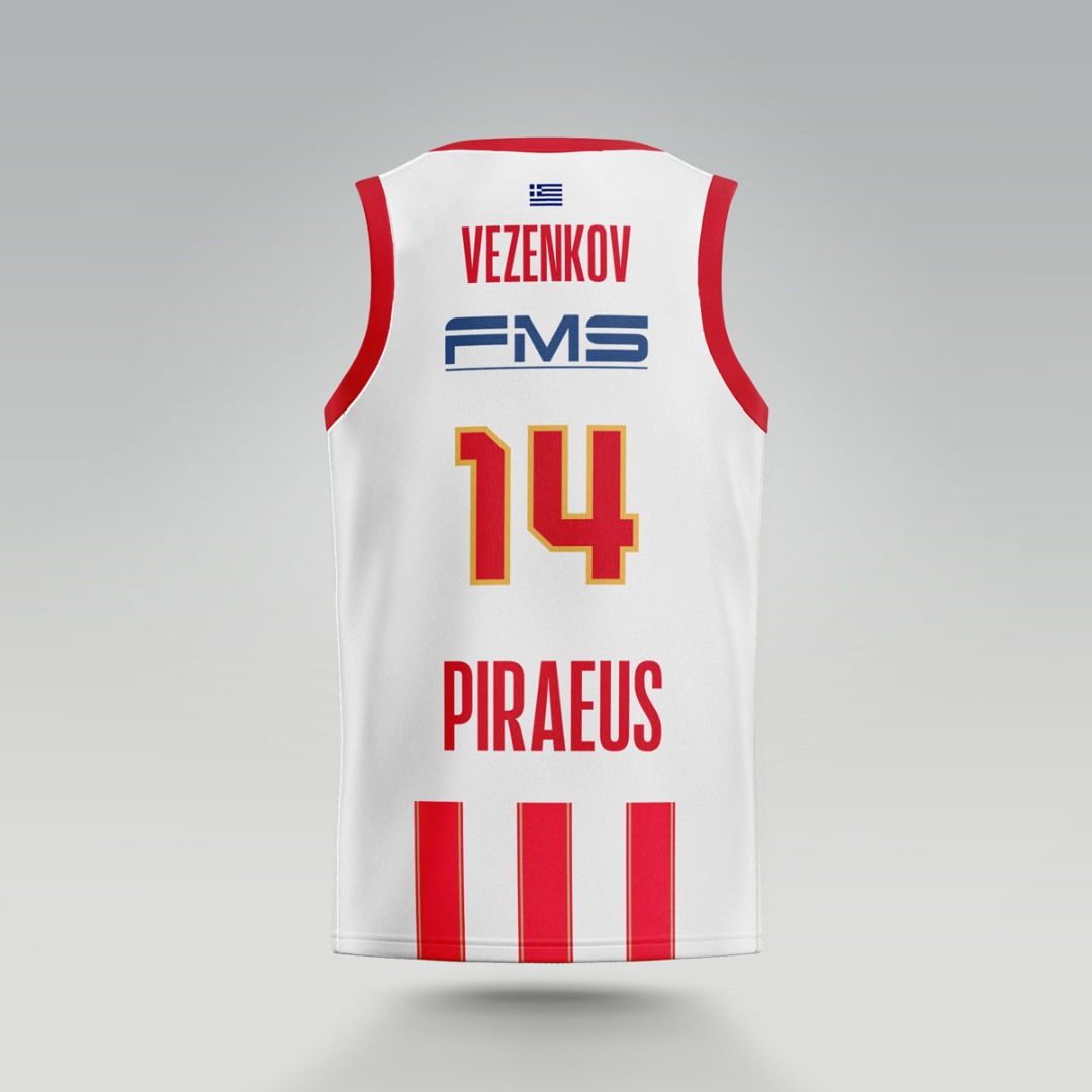 100 Years Anniversary OLYMPIACOS B.C. Away (Stripes) Jersey SASHA VEZENKOV-14