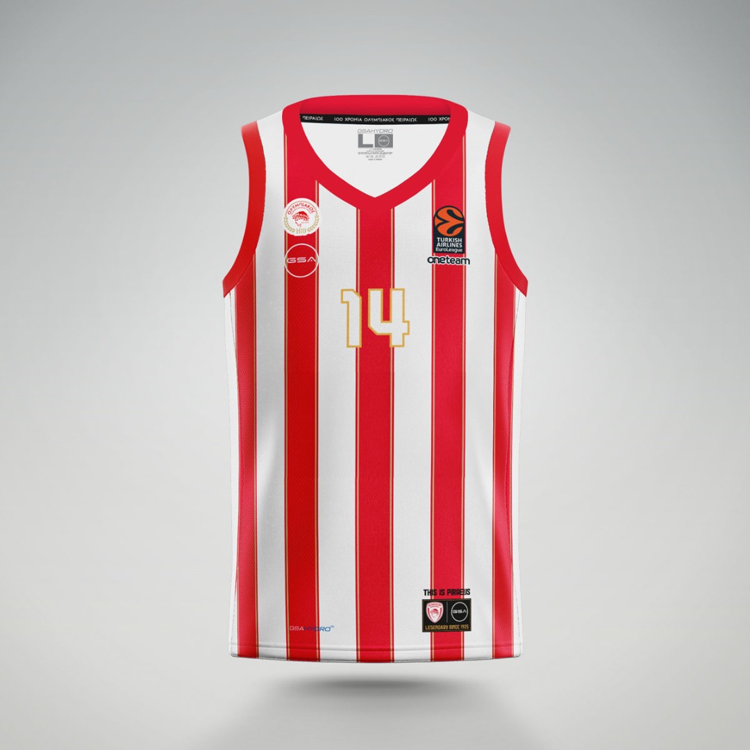 H Επίσημη Φανέλα Olympiacos B.C. είναι ειδικά σχεδιασμένη για υψηλές επιδόσεις με την τεχνολογία GSAHYDRO[+].